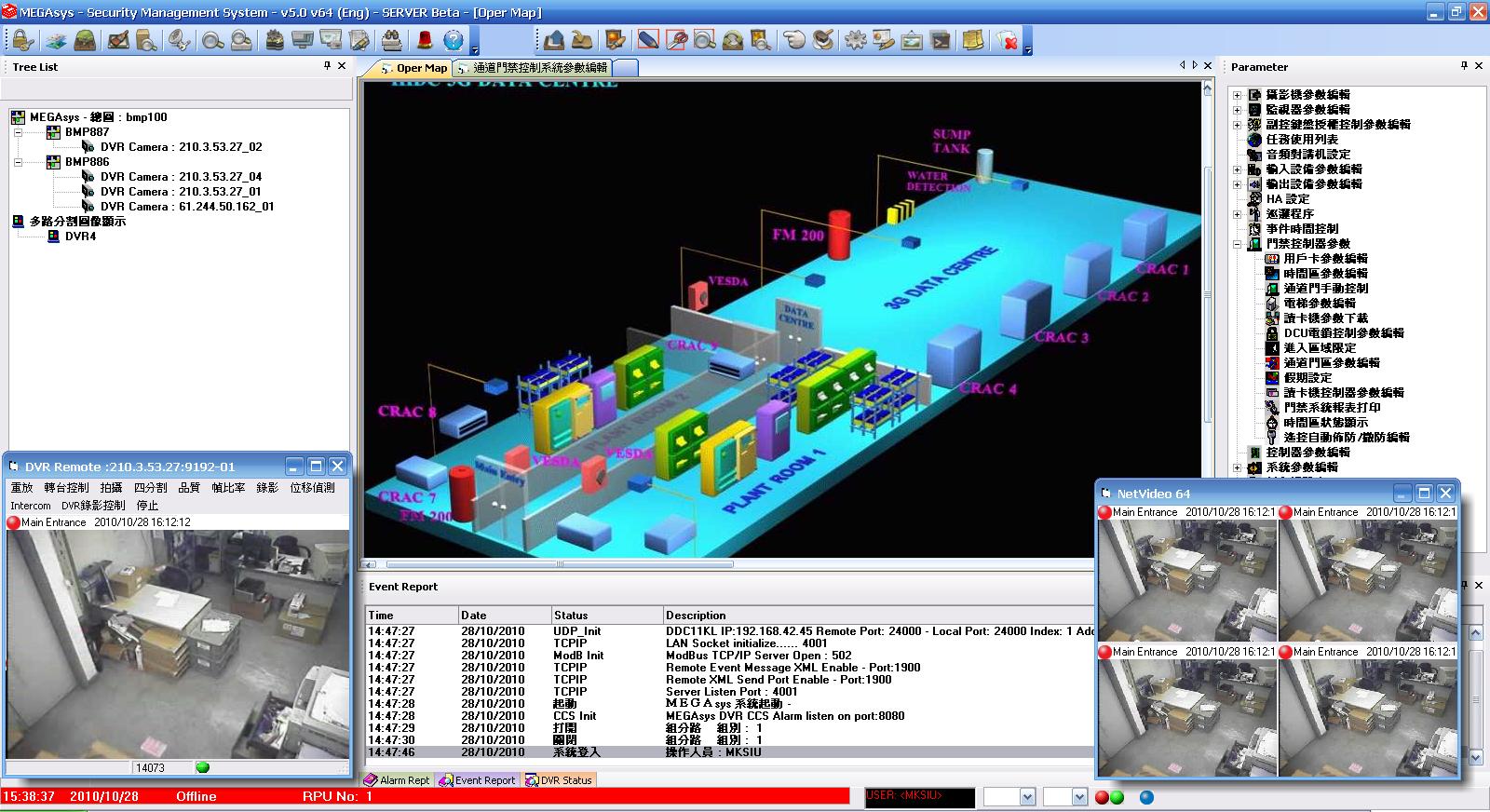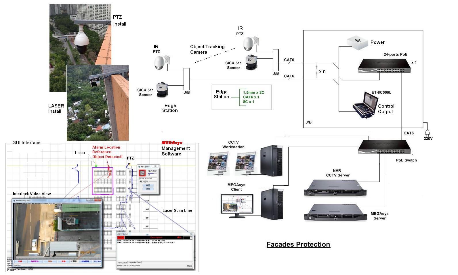 MEGAsys private CCTV/Alarm security management system for this terminal also BMS interface.
