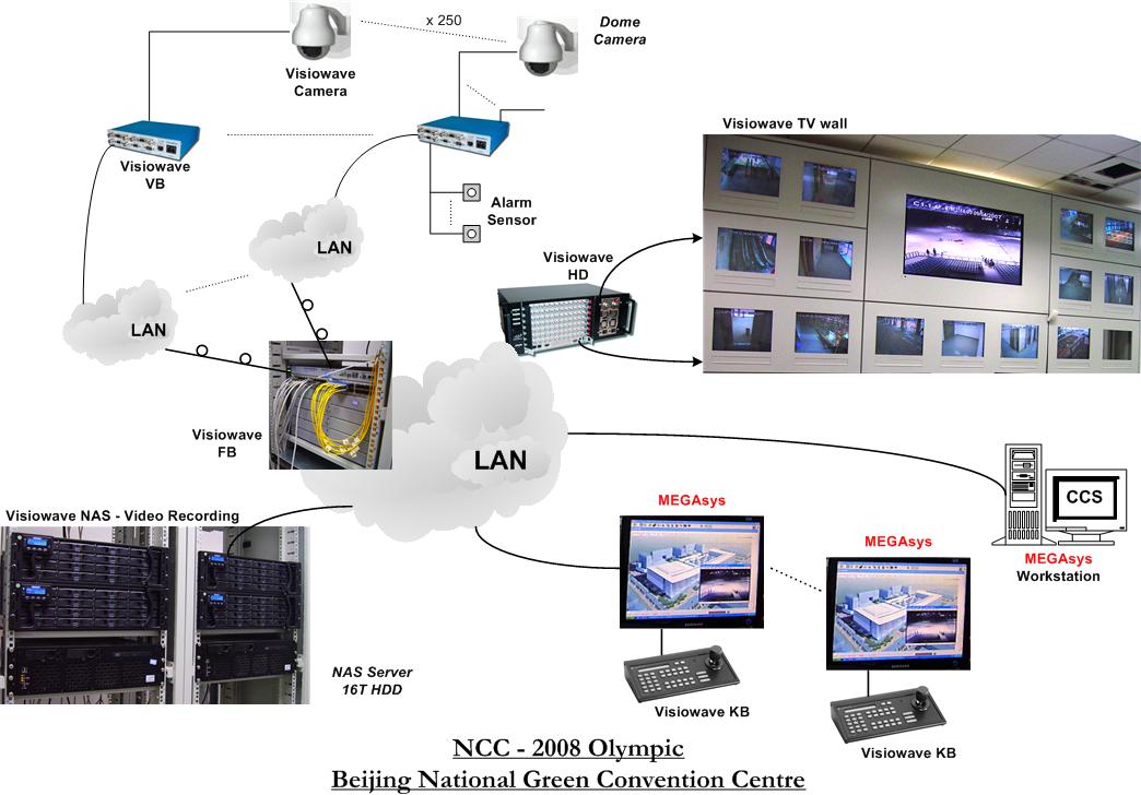 The MEGASYS CCTV Management System is designed as conventional an expandable digital/analogue full matrix video switching Client/Server base system, Integrated with latest digitals codec technology, It can be configured from 1,000 video inputs by a multi video output channels to its fully expanded configuration supporting video switched to all digital/analogue video output channels. All video output channels support Chinese text insertion for camera identification labeling, presenting current date/time and other system/operator status information.