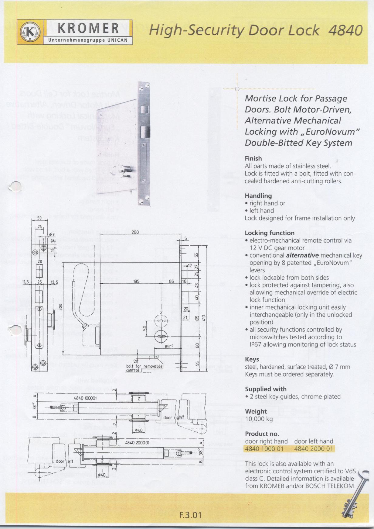 KROMER 4840 High Security Lock and EL580 lock compatible